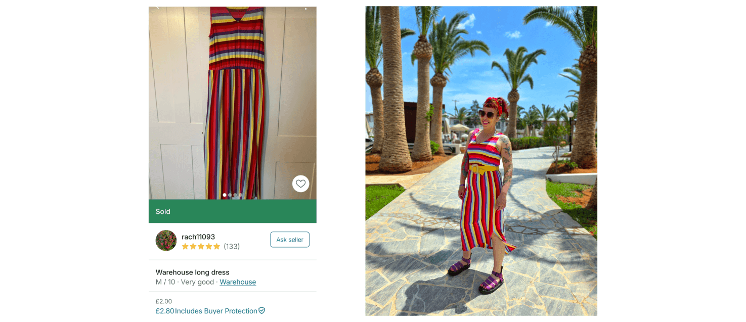 When I do need something new, Vinted is my go-to for affordable, preloved holiday looks. It’s just as easy as online shopping, but way more exciting when you find unique, bold low-impact pieces. Before my recent trip to Greece, I picked up some fab pieces including a gorgeous £2 rainbow dress which has become one of my summer staples, as well as many other fab finds.
